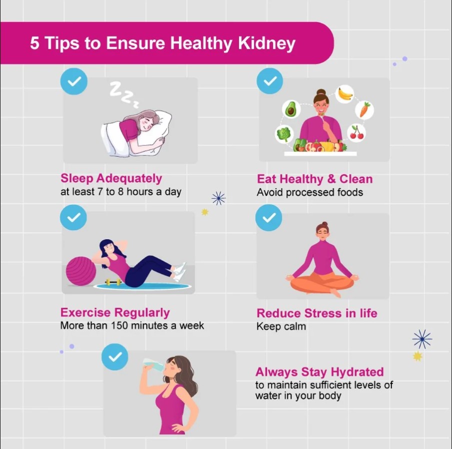 To ensure kidneys stay healthy, we should get adequate sleep (at least seven to eight hours a day), eat healthily and exercise regularly (more than 150 minutes a week), reduce stress in life and always stay hydrated.