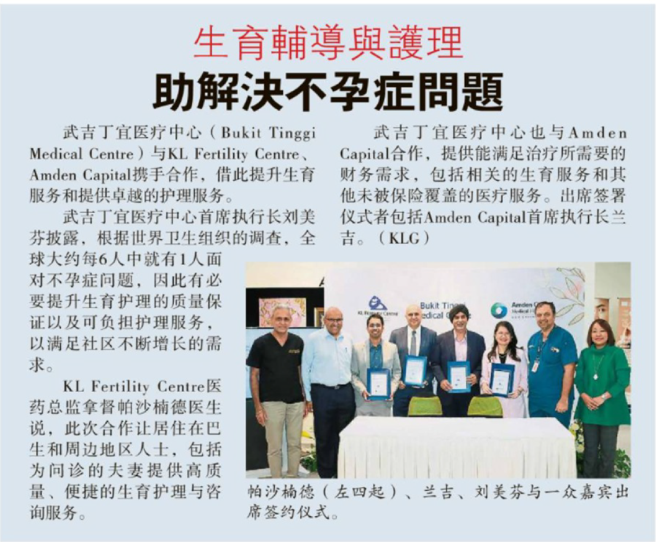 Ms. Jasmine Lau, CEO of BTMC, underscored the hospital’s dedication to providing comprehensive healthcare solutions and meeting the community’s health needs. “By collaborating with KL Fertility Centre, we aim to elevate our services for individuals seeking fertility assistance,” said Lau. “Partnering with Amden Capital will provide additional financing options for patients seeking financial aid in areas such as fertility treatment, dermatology, maternity, and aesthetics.”